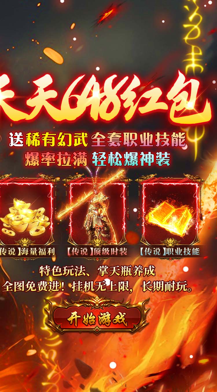 西行烽火燃,传奇再启航!《热血西游(天天送648)》以经典西游故事为基底,创新融合传奇玩法精髓,打造一款兼具情怀与爽感的西游传奇巨作。游戏打破传统传奇的氪金壁垒,以永久3折充值福利、每日648充值红包为核心,搭配掌天瓶养成、BOSS高爆等特色玩法,让每一位玩家都能轻松获取稀有材料与真实充值,无需重金投入也能畅享顶配游戏体验。无论是偏爱自由打宝的散人玩家,还是追求巅峰战力的高手大神,都能在这片西游传奇大陆上找到专属乐趣,即刻启程,奔赴一场热血沸腾的三界冒险,书写属于自己的西游传奇。